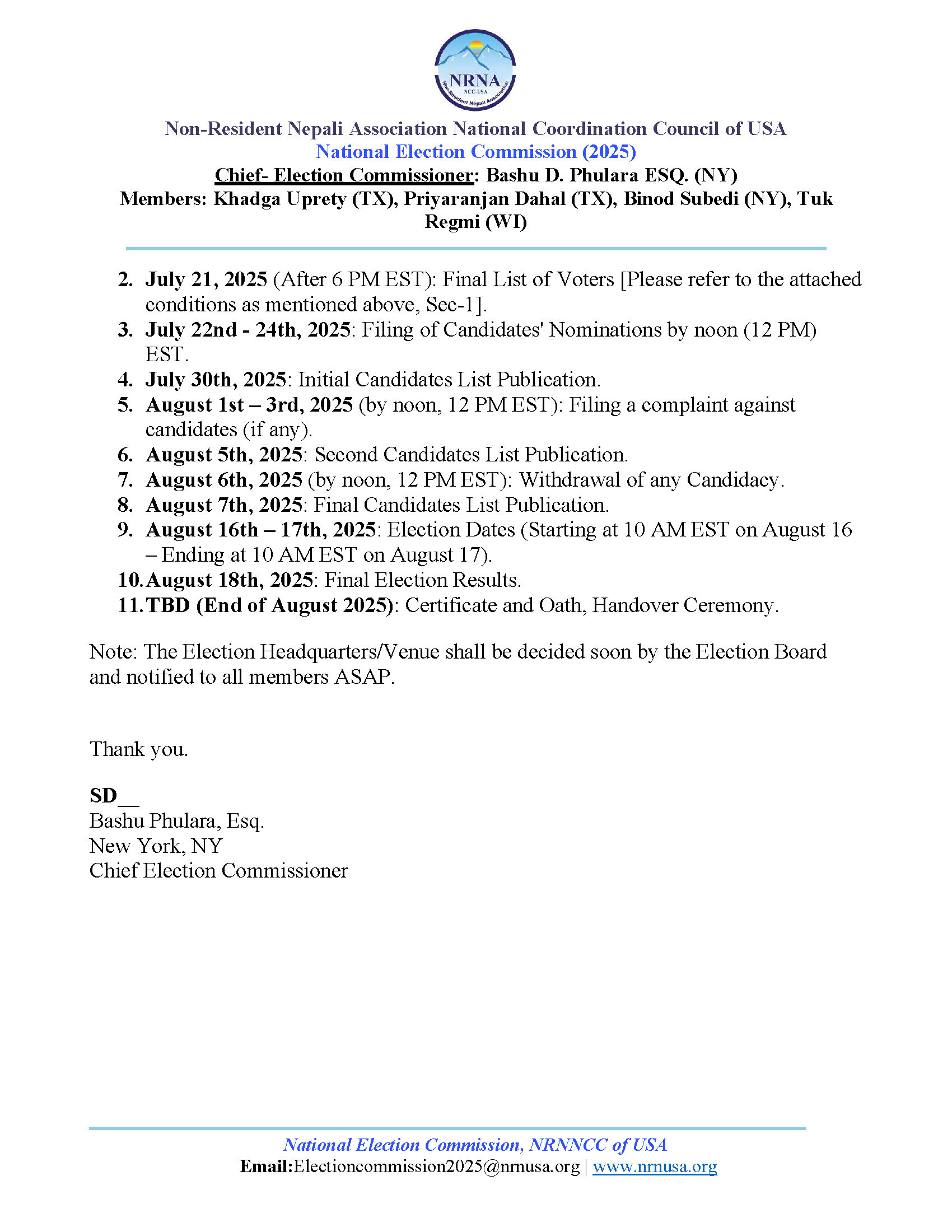 Dear Members of the Non-Resident Nepali Association in America,